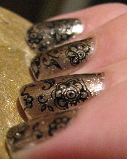 I'm still trying out my new Konad plates and decided to do something nice and sweet. I haven't featured this polish from China Glaze and it is such a nice, neutral shimmer.
